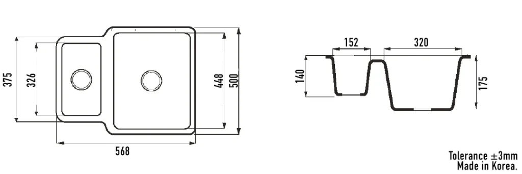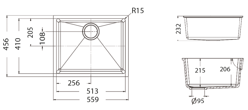 Tristone SS162 Half Bowl Sink